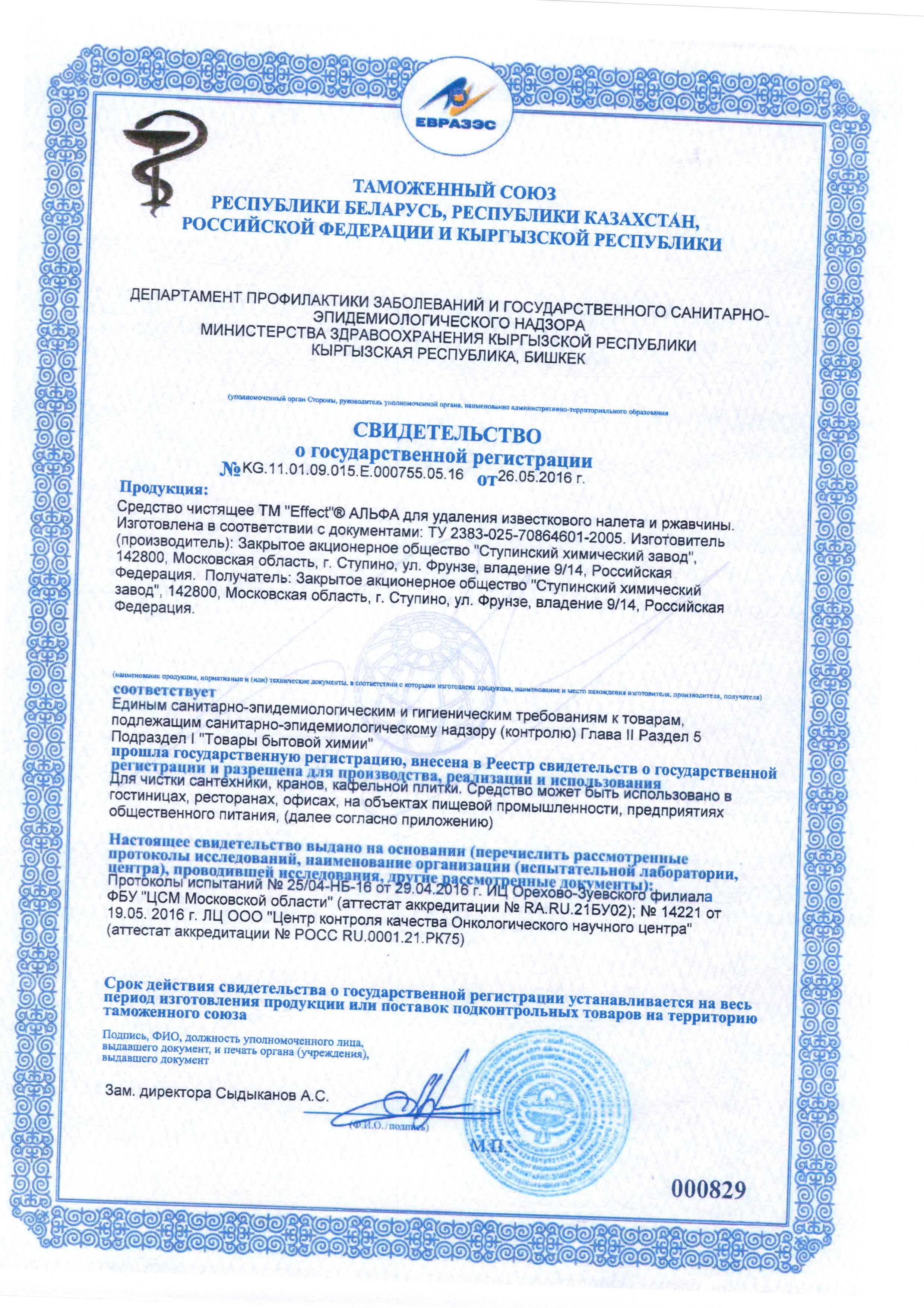 Средство чистящее для удаления известкового налета и ржавчины Effect Alfa 103