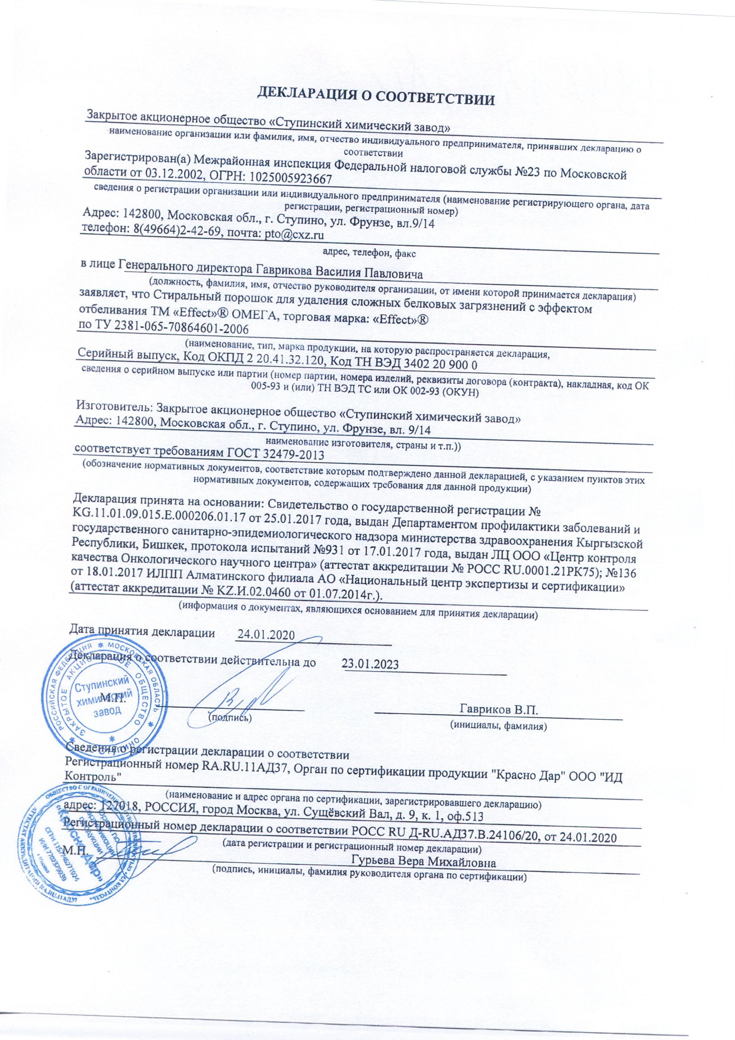 Средство отбеливающее с комплексным действием для тканей и покрытий Effect Omega 503