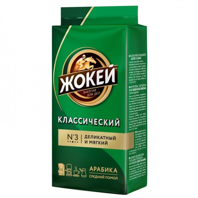 Упакован кофе «Жокей» в плотный вакуумный пакет, который отлично сохраняет его вкусоароматические качества на протяжении всего срока использования, защищая от воздействия влаги и кислорода.