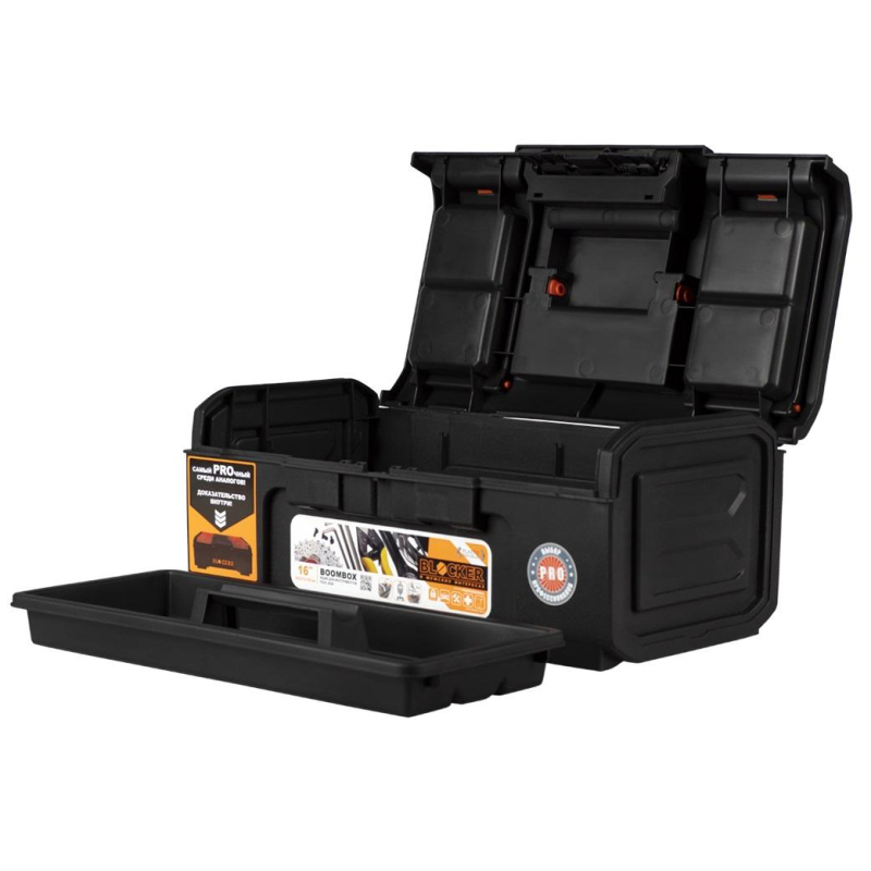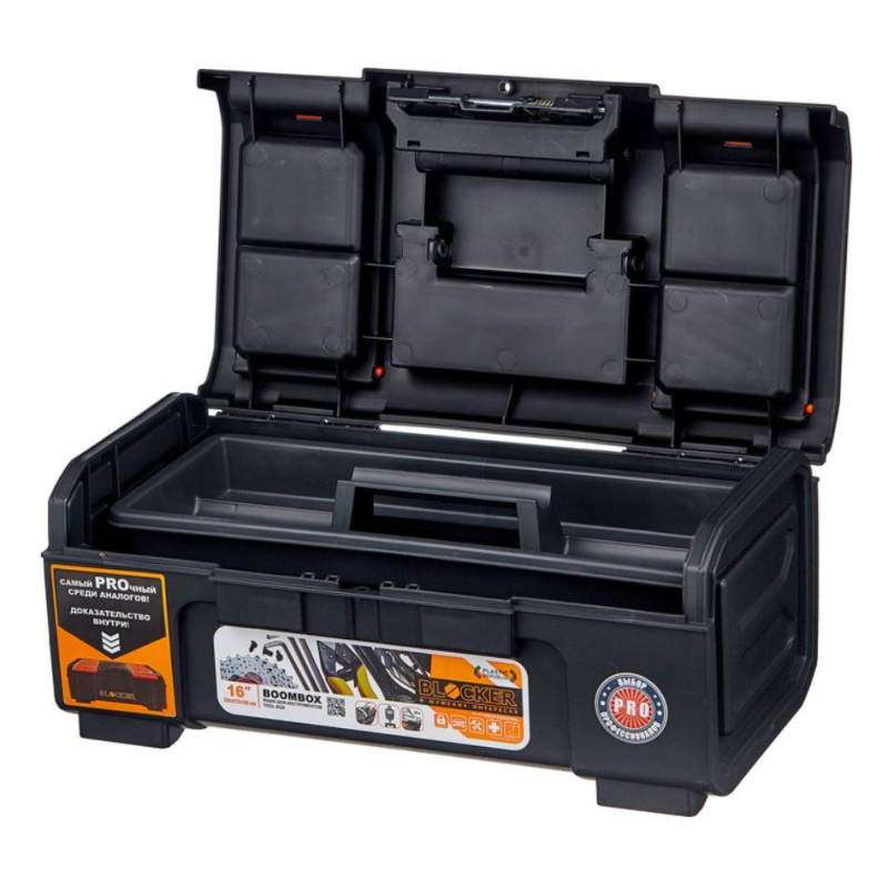 Модель изготовлена из прочного пластика и оснащена удобной ручкой, которая обеспечивает надежный перенос. Конструкция замка разработана специально для легкого открытия одной рукой, но при этом исключено случайное открывание ящика. За счёт опор в основании, ящик устойчивый и имеет максимальный объем хранения. Дополнительный съемный лоток и внешние отделения на крышке позволяют хранить необходимые инструменты и мелочи.