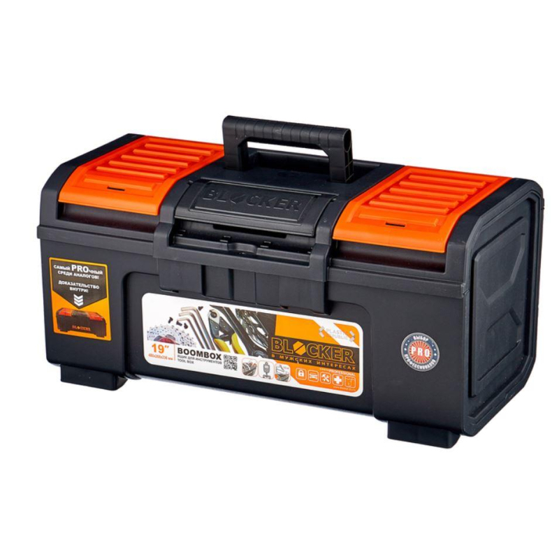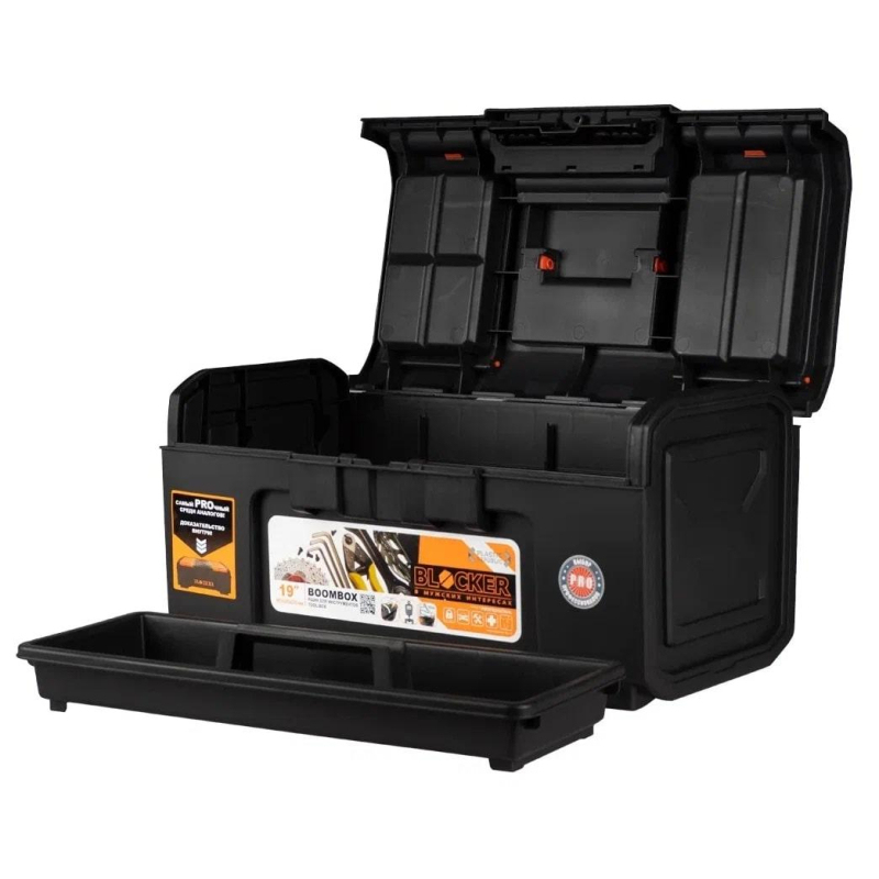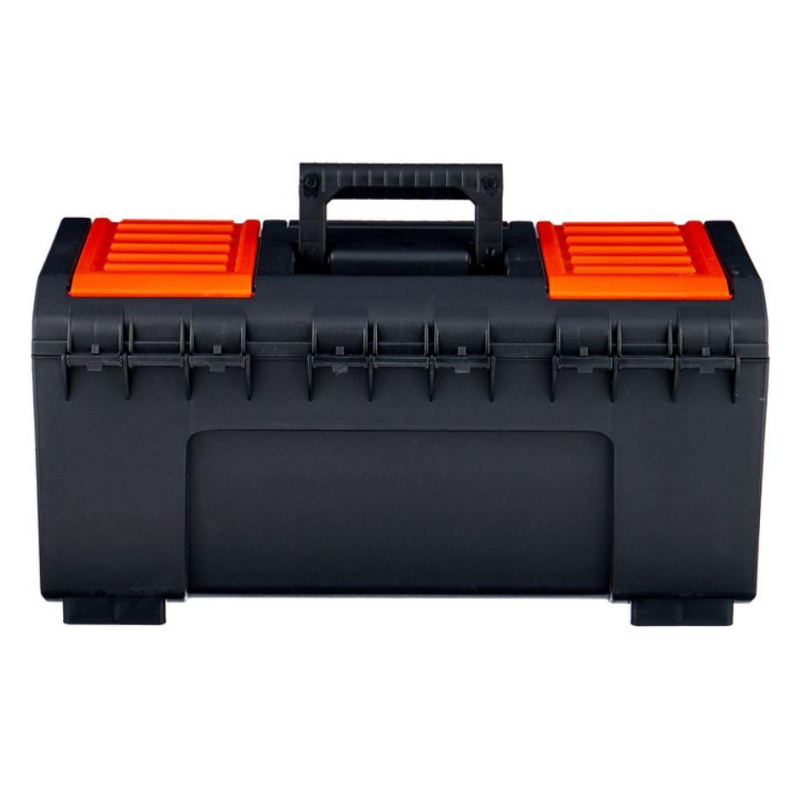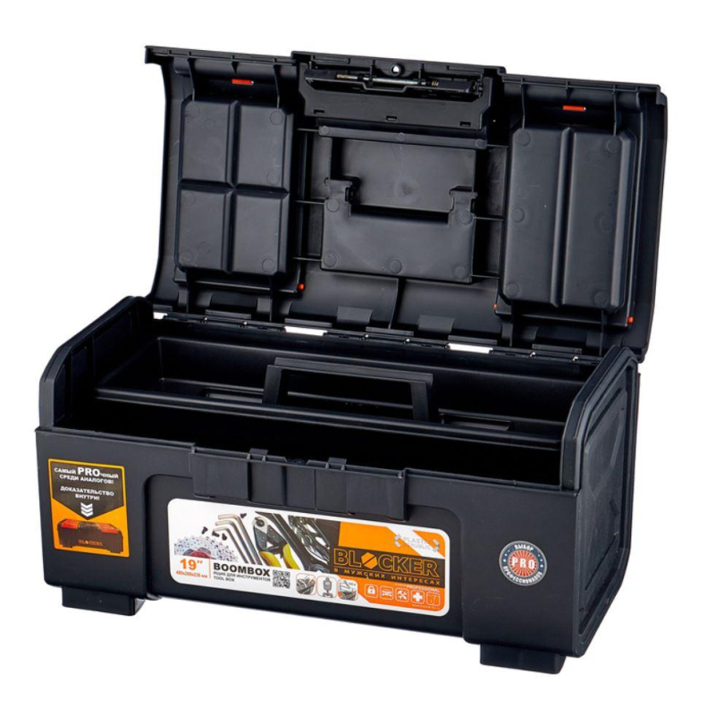 Модель изготовлена из прочного пластика и оснащена удобной ручкой, которая обеспечивает надежный перенос. Конструкция замка разработана специально для легкого открытия одной рукой, но при этом исключено случайное открывание ящика. За счёт опор в основании, ящик устойчивый и имеет максимальный объем хранения. Дополнительный съемный лоток и внешние отделения на крышке позволяют хранить необходимые инструменты и мелочи.