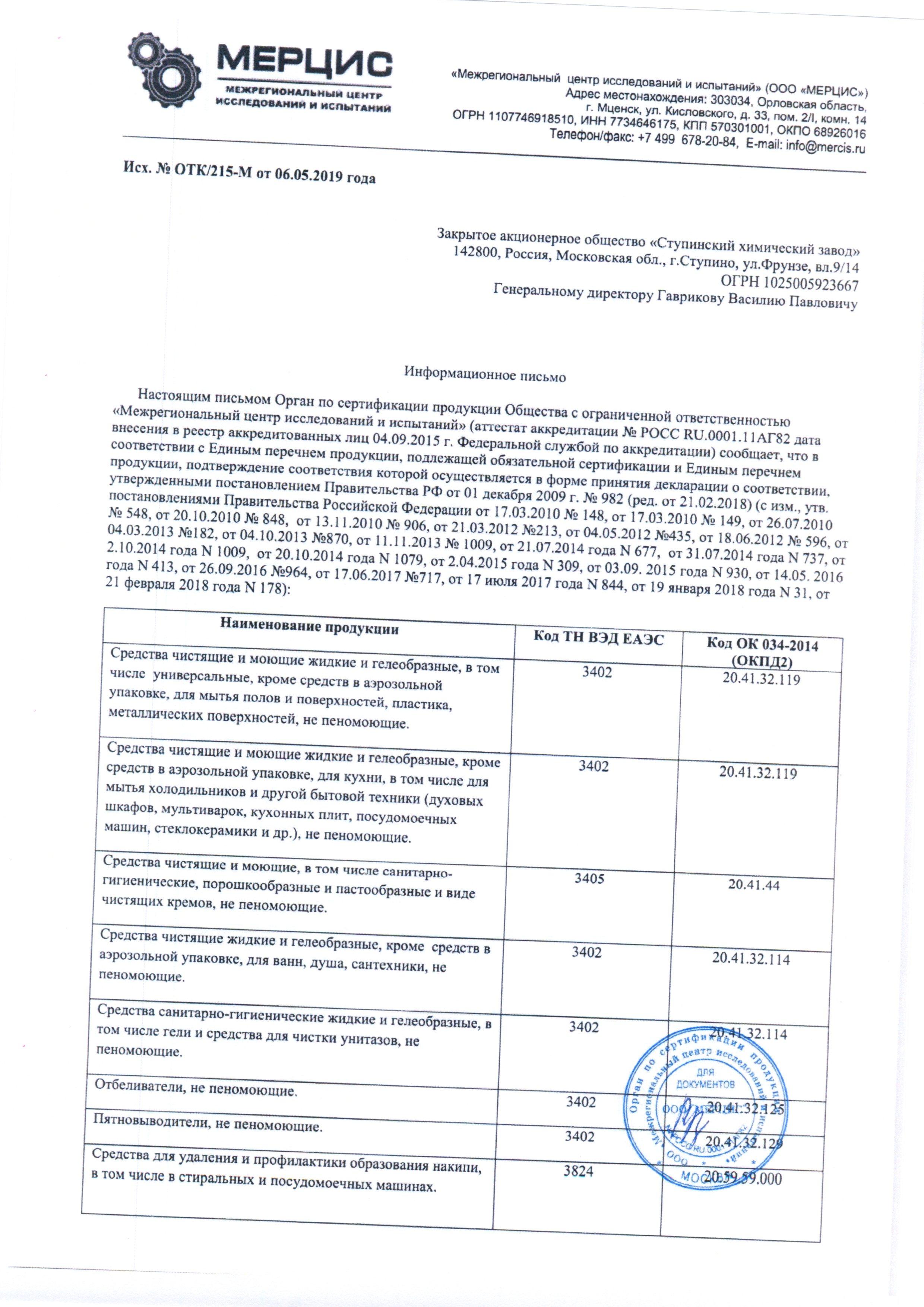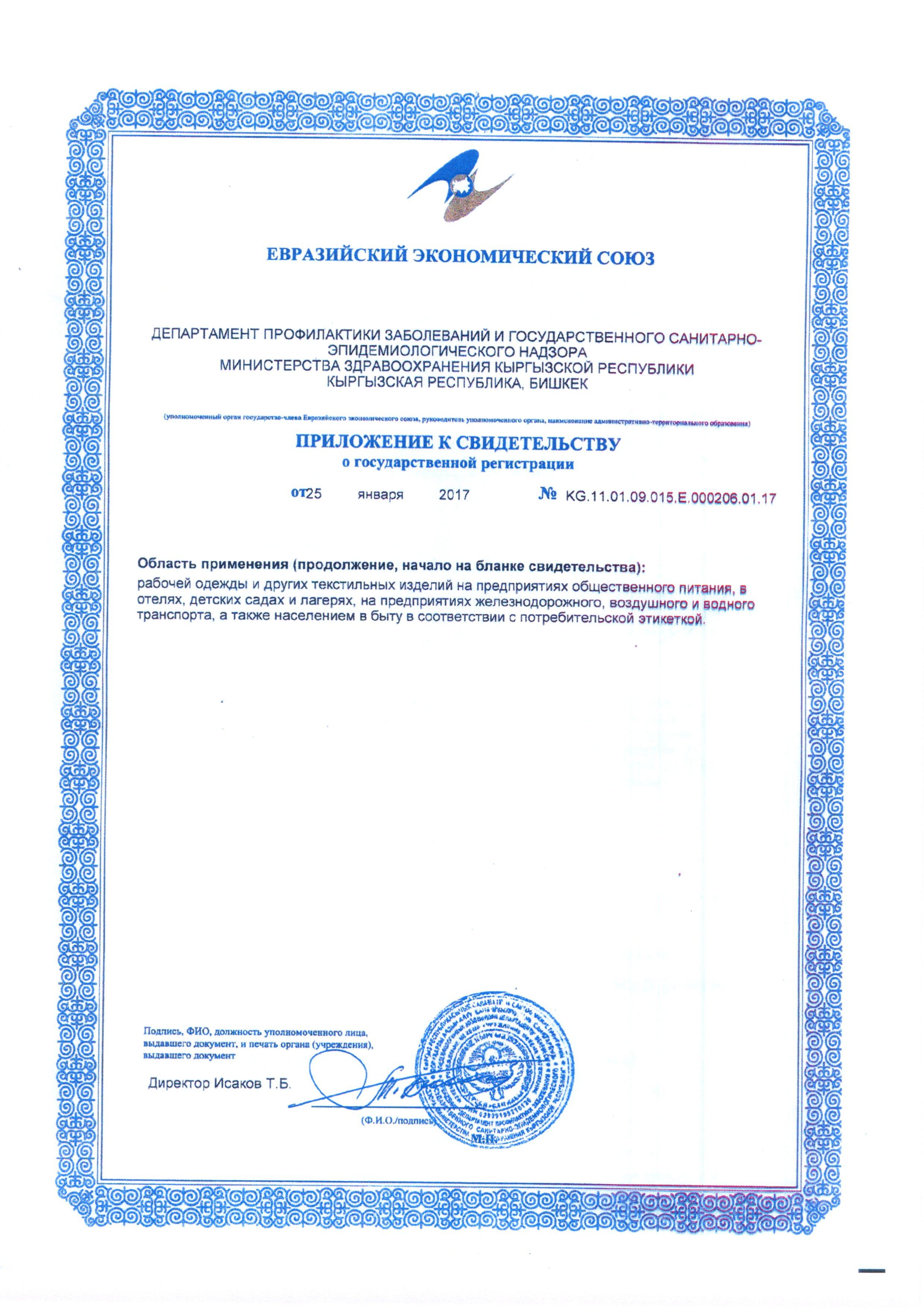 Сертификат на товар - Порошок стиральный универсальный с эффектом отбеливания Effect Omega 506 25 кг (концентрат)