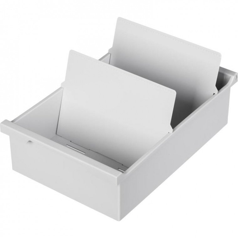 Открытая горизонтальная картотека Exacompta формата А4 изготовлена из пластика серого цвета. Предназначена для удобного хранения и систематизации карточек и документов. Размер изделия — 347×319×137 мм. Вмещает до 1200 карточек (в комплект не входят). Картотека поставляется с двумя пластиковыми разделителями. Размер разделителя — 298×4×216 мм.