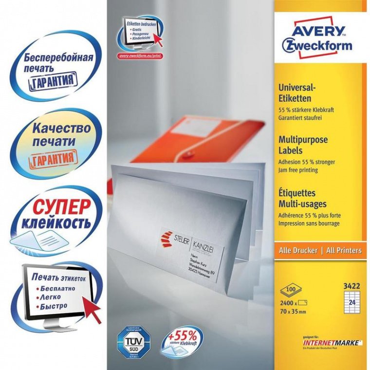 Идеальное решение для большого объема печати и рассылки с гарантией беспрепятственного прохождения листов через любой принтер. Это подтверждает немецкая сертификация TÜV SÜD (Объединение Технического надзора).