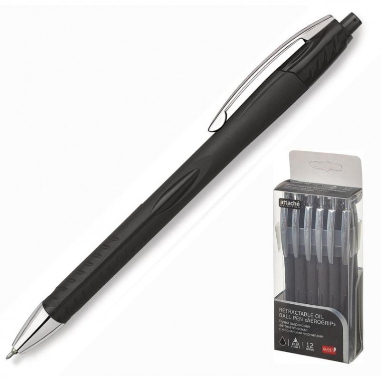 Ручка шариковая автоматическая Attache Selection Glide Aerogrip. Ручка, созданная по революционным технологиям с использованием материалов высшего качества, обеспечивает мягкое и качественное письмо за счет использования чернил низкой вязкости Visco Fluid Ink на масляной основе. Сочетание уникальных технологий производства чернил и пишущего узла позволяет писать на 20% дольше без пропусков и помарок при минимальном давлении на ручку. Специальное прорезиненное нанесение на корпусе обеспечивает удобный захват ручки и комфорт во время письма. Ручка так же предназначена для левшей. Цвет чернил: чёрный. Диаметр шарика: 0,7 мм. Толщина линии 0,5 мм. Особый акцент этой ручки придаёт современный дизайн.