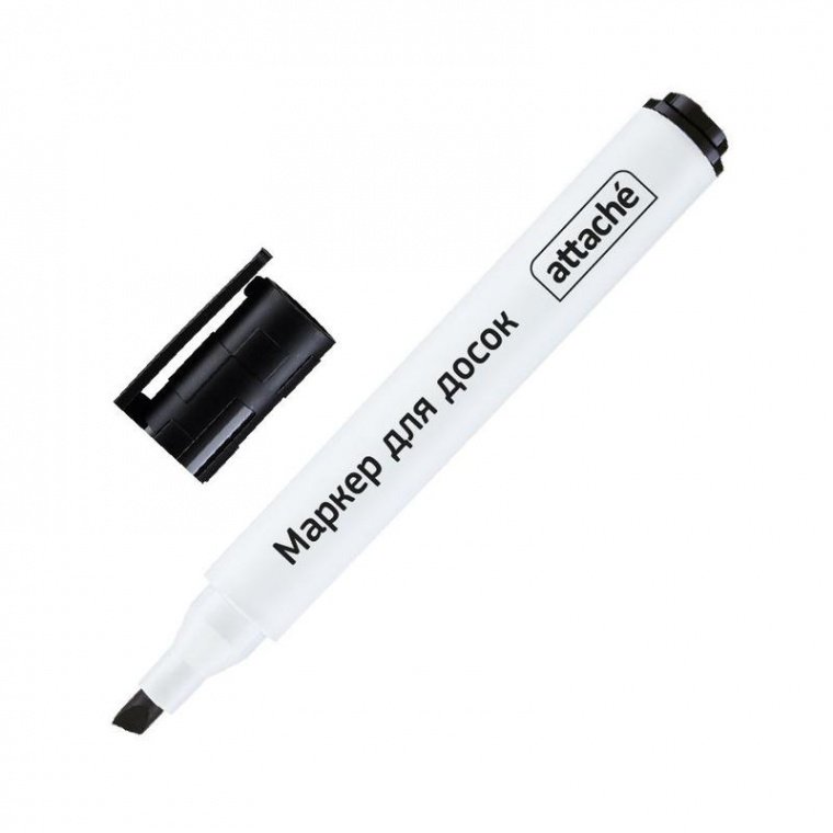Маркер Аttache со скошенным наконечником, предназначенный для письма на белых магнитно-маркерных досках, обладает чернилами на спиртовой основе, обеспечивающими яркое выразительное письмо. Толщина линии письма 1-5 мм. Надписи быстро сохнут, не оставляя подтеков и разводов, стираются только сухой губкой. После применения необходимо плотно закрывать колпачок после применения.