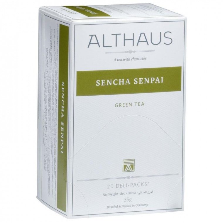 Чай Althaus Deli Packs Sencha Senpai зеленый 20 пакетиков — великолепный зеленый чай с утонченным, пикантным вкусом и нежным желто-зеленым настоем. Сенча является самым популярным чаем в Японии и, конечно, отлично сочетается с японской кухней. Свое название напиток получил благодаря особой обработке чайного листа, который пропаривается и скручивается в тоненькие полоски, напоминающие своим видом паучьи лапки, что в японском языке звучит как «сентя».