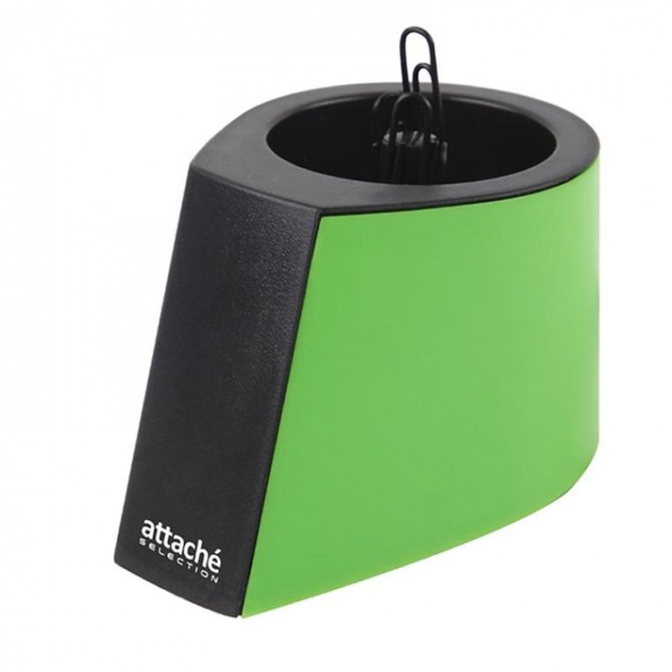 Скрепочница магнитная Attache Selection Color выполнена в пластиковом корпусе черно-зеленого цвета. Загрузка скрепок производится сверху, сильный магнит не позволяет им произвольно высыпаться. Максимальная вложенность скрепок 28 мм до 100 шт. В подарок 50 черных скрепок. Размеры скрепочницы: 91×68×62 мм. Диаметр: 48 мм.