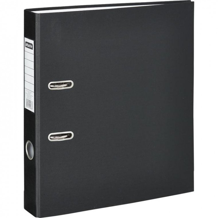 Папка с арочным механизмом Attache Economy с шириной корешка 50 мм, цвет черный. Папка изготовлена из плотного картона, внешняя поверхность покрыта ПВХ, внутренняя бумагой. Формат А4. Арочный механизм произведен в Чехии. Папка вмещает до 350 листов. Страна происхождения — Россия.