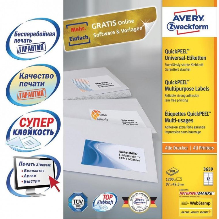 Идеальное решение для большого объема печати и рассылки с гарантией беспрепятственного прохождения листов через любой принтер. Это подтверждает немецкая сертификация TÜV SÜD (Объединение Технического надзора).