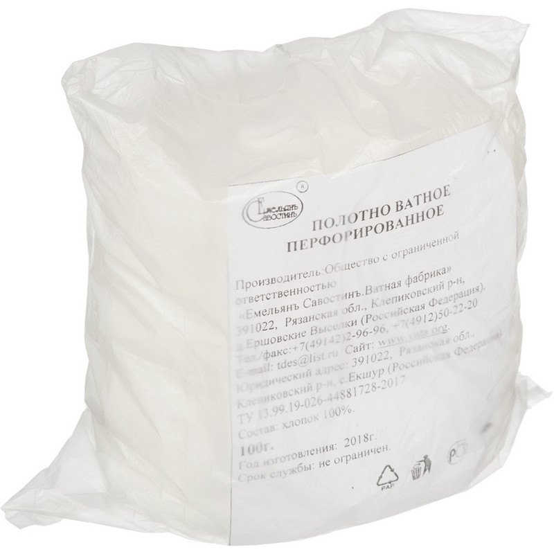 Перевяз. ср-ва Ватное полотно 100гр 260 стиков Емельянъ Савостинъ