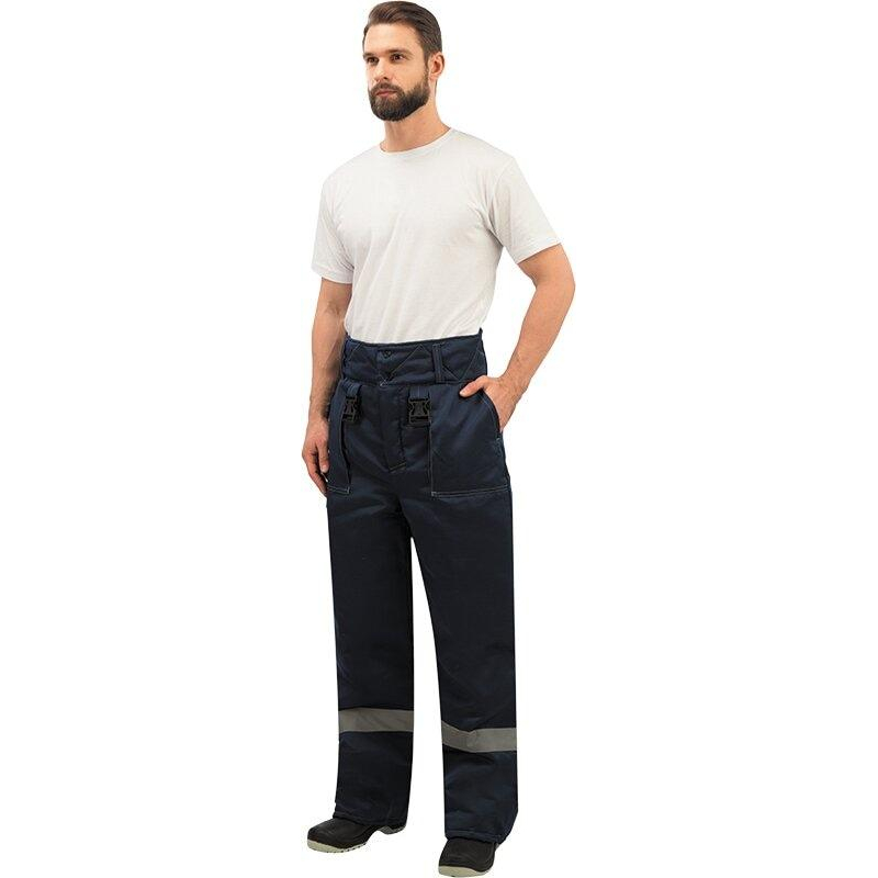 Спецодежда зимняя брюки мужские з32-БР (размер 40-42, рост 158-164) темно-синего цвета. Изготовлены из материала 'Оксфорд' (100% полиэстер) плотностью 90 +/- 5 г/кв.м. Утеплитель - синтепон, плотность утеплителя - 200 г/кв. м (1 слой). Материал подкладки - 100% полиэстер. Светоотражающая полоса шириной 5 см размещена внизу брюк. Застежка - гульф на три петли-пуговицы. Брюки прямого силуэта, с отрезным поясом. Пояс завышенный, застегивающийся на две петли-пуговицы, с пятью шлевками. Пояс стеганый на бретелях с регулировкой фастексами. Передняя часть брюк: два накладных кармана с косым входом. Понизу кармана двойная отсрочка. Задняя часть: по линии талии наличие двух выточек. Нижняя часть брюк обработана швом в подгибку. В брюках припуски боковых, шаговых швов направлены на задние половинки, припуск шва сидения направлен на левую заднюю половинку. Брюки предназначены для защиты работающих от пониженных температур в различных отраслях промышленности, а также производственных загрязнений. Рекомендуются для использования в сельском хозяйстве, логистике, легкой промышленности, строительстве. Изготавливаются в соответствии с ГОСТ 12.4.303-2016, ТР ТС 019/2011. Коллекция зимней спецодежды з32 представлена в двух видах ткани - смесовая с влагоотталкивающей пропиткой и Оксфорд. К брюкам з32-БР из ткани Оксфорд подходят куртки з32-КУ из аналогичной ткани, которые в коллекции представлены в двух цветовых решениях: синий с отделкой василькового цвета и синий с отделкой яркого оранжевого цвета.