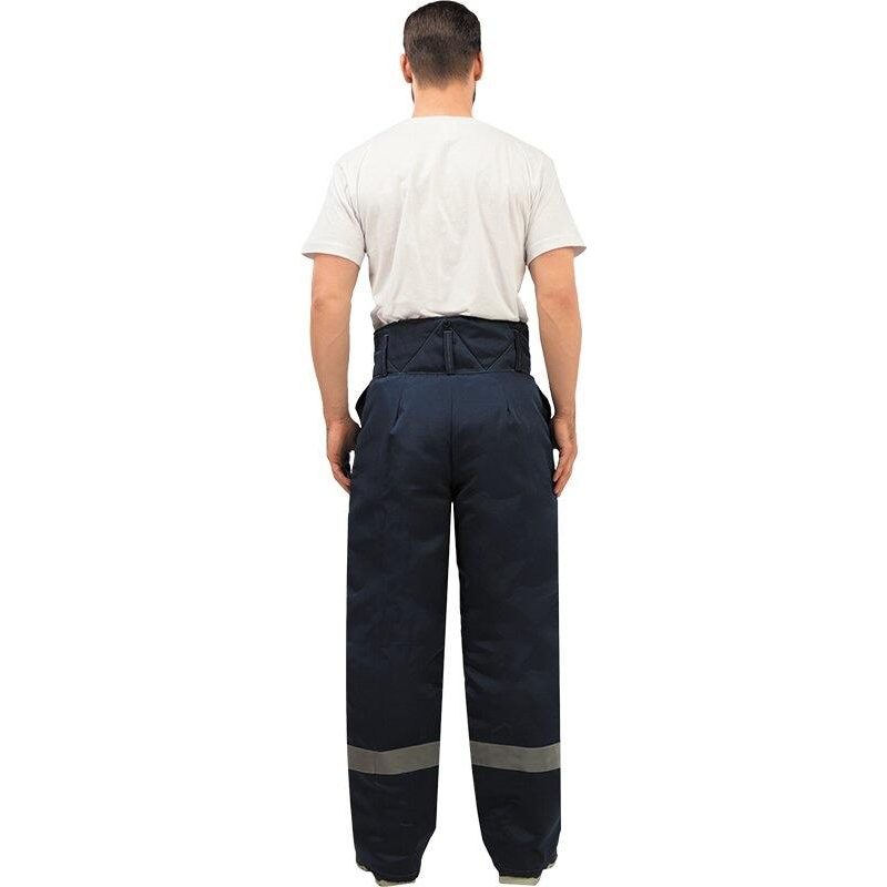 Спецодежда зимняя брюки мужские з32-БР (размер 68-70, рост 182-188) темно-синего цвета. Изготовлены из материала ?Оксфорд? (100% полиэстер) плотностью 100 г/кв. м. Утеплитель - синтепон, плотность утеплителя - 200 г/кв. м (1 слой). Материал подкладки - 100% полиэстер. Светоотражающая полоса шириной 5 см размещена внизу брюк. Застежка - гульф на три петли-пуговицы. Брюки прямого силуэта, с отрезным поясом. Пояс завышенный, застегивающийся на две петли-пуговицы, с пятью шлевками. Пояс стеганый на бретелях с регулировкой фастексами. Передняя часть брюк: два накладных кармана с косым входом. Понизу кармана двойная отсрочка. Задняя часть: по линии талии наличие двух выточек. Нижняя часть брюк обработана швом в подгибку. В брюках припуски боковых, шаговых швов направлены на задние половинки, припуск шва сидения направлен на левую заднюю половинку. Брюки предназначены для защиты работающих от пониженных температур в различных отраслях промышленности, а также производственных загрязнений. Рекомендуются для использования в сельском хозяйстве, логистике, легкой промышленности, строительстве. Изготавливаются в соответствии с ГОСТ Р 12.4.236 - 2011. Коллекция зимней спецодежды з32 представлена в двух видах ткани - смесовая с влагоотталкивающей пропиткой и Оксфорд. К брюкам з32-БР из ткани Оксфорд подходят куртки з32-КУ из аналогичной ткани, которые в коллекции представлены в двух цветовых решениях: синий с отделкой василькового цвета и синий с отделкой яркого оранжевого цвета.