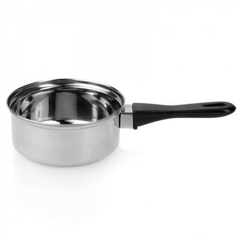 Ковш для приготовления пищи LaSella. Диаметр 14 см, высота 6,5 см, длина с ручкой 27 см. Изготовлен из нержавеющей стали. Термоизолированная ручка. Петля для подвешивания. Тип антипригарного покрытия: TriTitan.