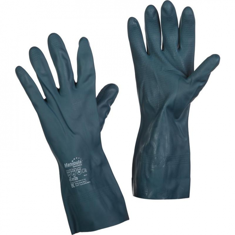 Перчатки Manipula Химик (LN-F-08) размера 9-9,5 (L) — герметичные перчатки из неопрена с добавлением латекса, стойкие к кислотам и щелочам высоких концентраций, органическим растворителям (этанол, ацетон), растительным жирам, нефти и нефтепродуктам (минеральным маслам). Неопреновый состав увеличивает стойкость к механическим воздействиям, а также значительно расширяет защиту от химических веществ. Текстурированная рабочая поверхность обеспечивает отличный сухой и влажный захват. Хлорирование поверхности способствует увеличению механической прочности и снижению аллергических реакций на латексные протеины. Плотное хлопковое покрытие внутри перчаток служит для удобства надевания и использования, снижения аллергических реакций на латексные протеины, а также комфортной термоизоляции. Модель толщиной 0,70 мм сохраняет эластичность и комфорт при температуре до −20 градусов по Цельсию. Длина перчаток — 32 см. Соответствует ТР ТС 019/2011; ГОСТ 12.4.252-2013; ГОСТ 20010-93; ГОСТ ЕN 388-2012 (3110); ГОСТ 12.4.278-2014 (ABKL). Защитные свойства ТР ТС: Ми Вн Бм К80 Щ50 Он Нж Нс Нм. Срок хранения: 5 лет.