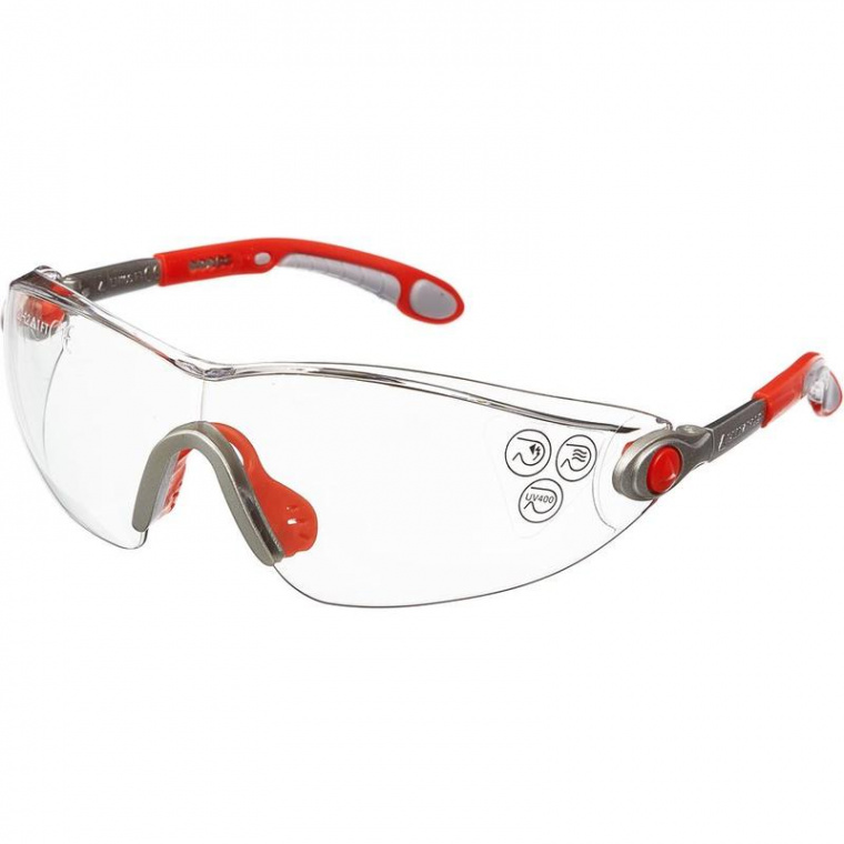 Очки защитные открытые Delta Plus Vulcano2 прозрачные. Очки изготовлены из монолитного прозрачного поликарбоната с противотуманным покрытием с защитой от царапин и ультрафиолетового и инфракрасного излучения. Регулируемые по длине и углу наклона дужки из нейлона, с плоскими окончаниями, а также интегрированное мягкое переносье из ПВХ обеспечивают комфорт, такие очки не упадут с лица во время работы. Очки панорамные, не ограничивают обзор, имеют боковую защиту. Могут применяться при выполнении работ на станках и устройствах для механической обработки твёрдых материалов, слесарных работах, а также при разнообразных видах работ, связанных с возможной угрозой получения травм глаз.