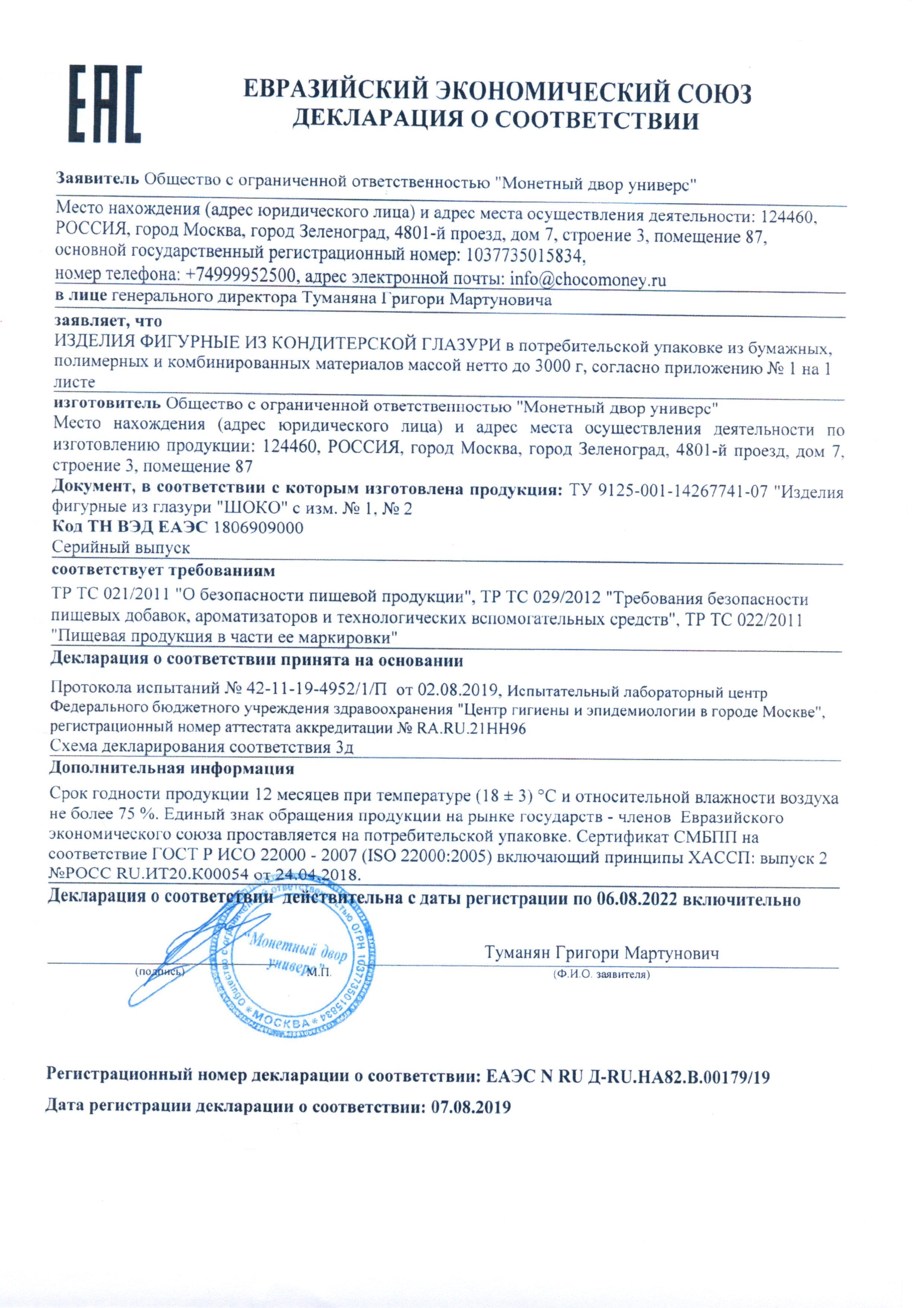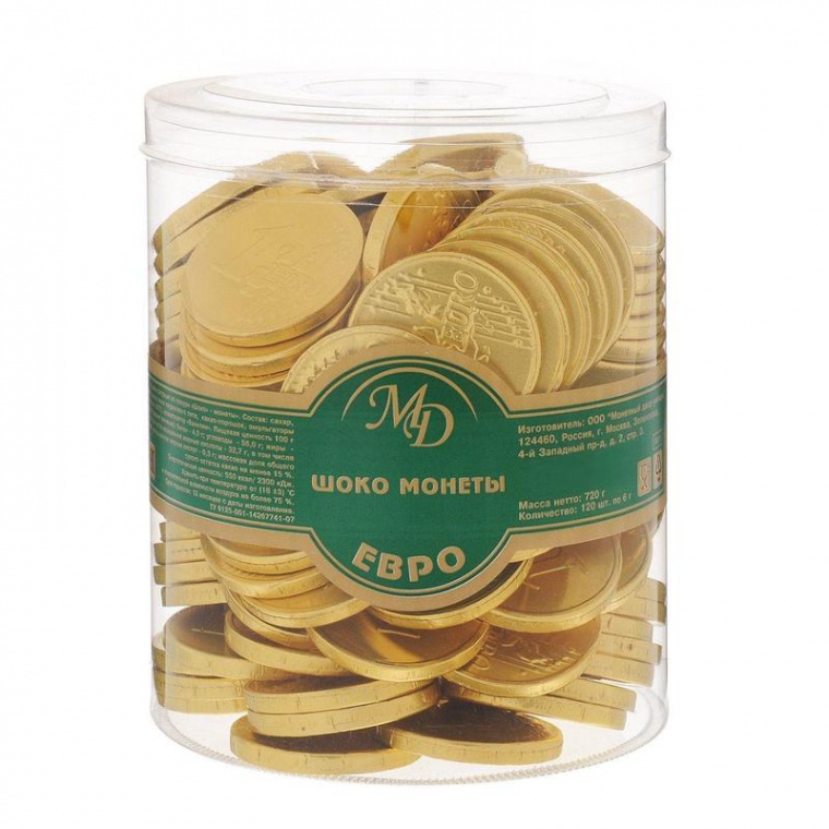 Сертификат на товар - Шоколад порционный Монеты в банке Евро (120 штук по 6 г)