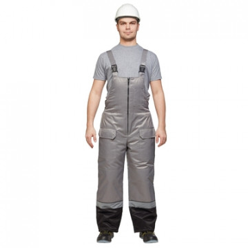 Спецодежда зимняя костюм мужской з11-КПКЖ состоит из куртки, полукомбинезона и мехового жилета (размер 44-46, рост 182-188) серого цвета с черными вставками. Изготовлен из смесовой ткани (49% хлопок + 51% полиэстер), плотность ткани - 260 г/кв.м. Утеплитель - синтепон, плотность утеплителя куртки - 200 г/кв.м (2 слоя), полукомбинезона - 200 г/кв.м (1 слой). Материал подкладки - 100% полиэстер. Светоотражающая полоса размещена на груди, спине, рукавах, а также внизу полукомбинезона. Куртка с центральной застежкой на молнию и ветрозащитным клапаном на кнопках, с меховым воротником и усиленными налокотниками, двумя нагрудными и двумя нижними накладными карманами с клапанами, застегивающимися на контактную ленту, и внутренним карманом, талия куртки регулируется кулиской. Полукомбинезон классического покроя с центральной застежкой на молнию и усилением в области колен, а также нагрудным и двумя нижними карманами с клапанами, застегивающимися на контактную ленту. Жилет меховой отстегивающийся, на пуговицах. Костюм обеспечивает защиту от пониженных температур и производственных загрязнений. ГОСТ 12. 4. 303-2016.Коллекция зимней спецодежды з11 представлена в нескольких цветовых сочетаниях: синий с отделкой черного цвета и серый, также с отделкой черного цвета.