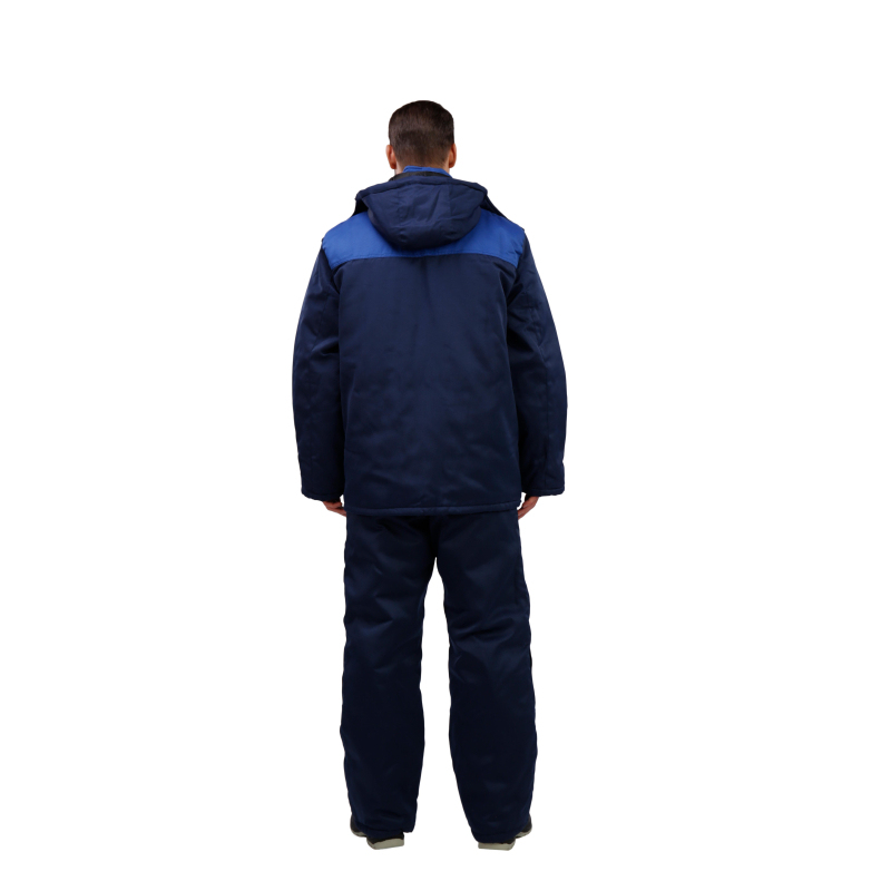 Спецодежда зимняя костюм мужской з12-КПК состоит из куртки и полукомбинезона (размер 60-62, рост 158-164) синего цвета с васильковыми вставками. Изготовлен из смесовой ткани с водоотталкивающей пропиткой (68% полиэфир, 32% хлопок), плотность ткани - 210 г/кв.м. Утеплитель из синтепона, плотность утеплителя у куртки - 200 г/кв.м (2 слоя), у полукомбинезона - 200 г/кв.м (1 слой). Материал подкладки - 100% полиэстер. Куртка застегивается на молнию и контактную ленту, оснащена отстегивающимся регулируемым капюшоном и напульсниками, усиленными налокотниками, а также имеет нагрудные и боковые накладные карманы с клапанами и внутренний карман. Полукомбинезон классического покроя с усилением в области колен и боковыми карманами, застегивается на молнию. Костюм обеспечивает защиту от пониженных температур и производственных загрязнений. ГОСТ 12. 4. 303-2016.
