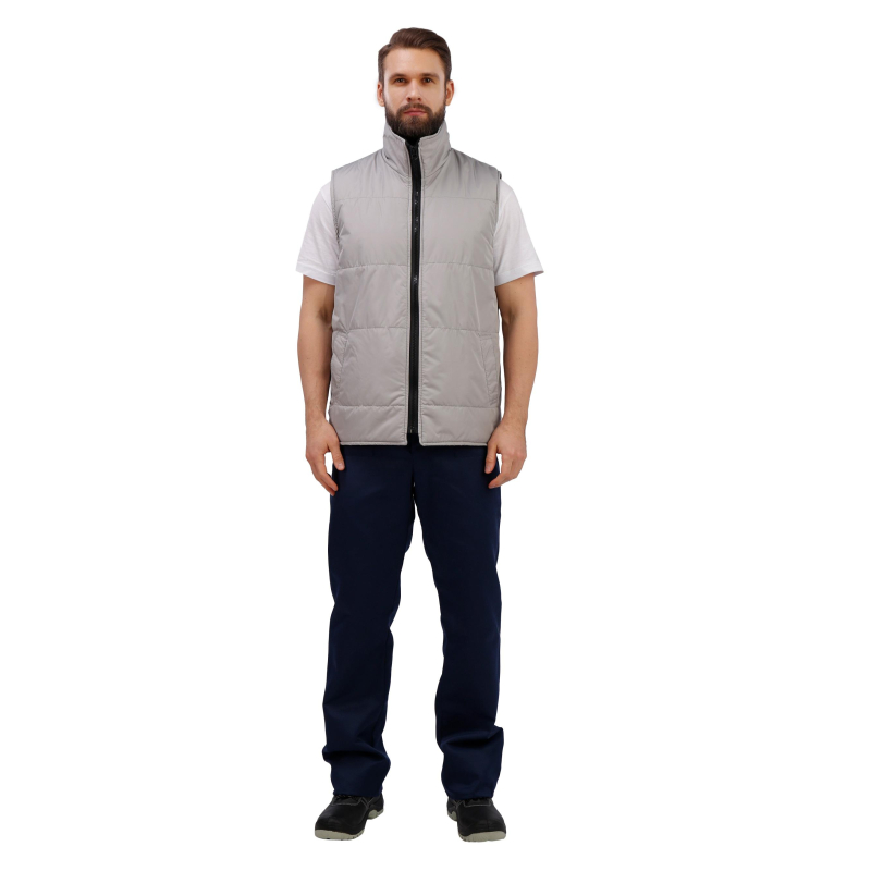 Жилет утепленный Комфорт+ (размер 60-62, рост 170-176) серый с центральной застежкой на молнию и с двумя прорезными карманами. Нижние концы борта закругленные. Подходит для работ в прохладных помещениях или на улице, с ограничением от +5 до +7 градусов Цельсия. Жилет универсален, он может быть использован в качестве униформы для женщин и для мужчин. Ткань: 100% полиэфир. Плотность ткани: 100 г/кв.м. Жилет утеплен синтепоном, 2 слоя по 100 г/кв.м. Ткань подкладки: 100% полиэстер. Защищает от общих производственных загрязнений.В коллекции утепленных жилетов Комфорт представлены удлиненные модели Комфорт+ в васильковом, красном и сером цветах и укороченная модель Комфорт в васильковом цвете.