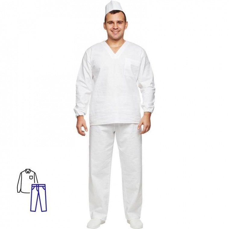 Спецодежда Костюм пекаря универсальный/ y05-КБР для руководителя (44–46,158–164) изготовлен из стопроцентного хлопка белого цвета, состоит из куртки и брюк. Подходит и для женщин, и для мужчин. Куртка с коротким рукавом и нагрудным карманом, свободный покрой обеспечивает удобство в работе. Брюки с поясом на резинке. ГОСТ 27574–87. Температурный режим стирки — не выше 40 градусов.