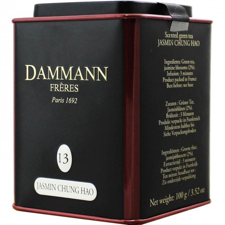Dammann The Jasmin упакован в элегантную жестяную банку черного цвета, которая оберегает вкус и полезные свойства ароматной смеси, а также гармонично вписывается в любой интерьер. Такая упаковка станет достойным презентом для уважаемых людей, партнеров и близких. Чашка великолепного напитка доставит подлинное удовольствие истинным гурманам и любителям утонченных и нежных напитков.