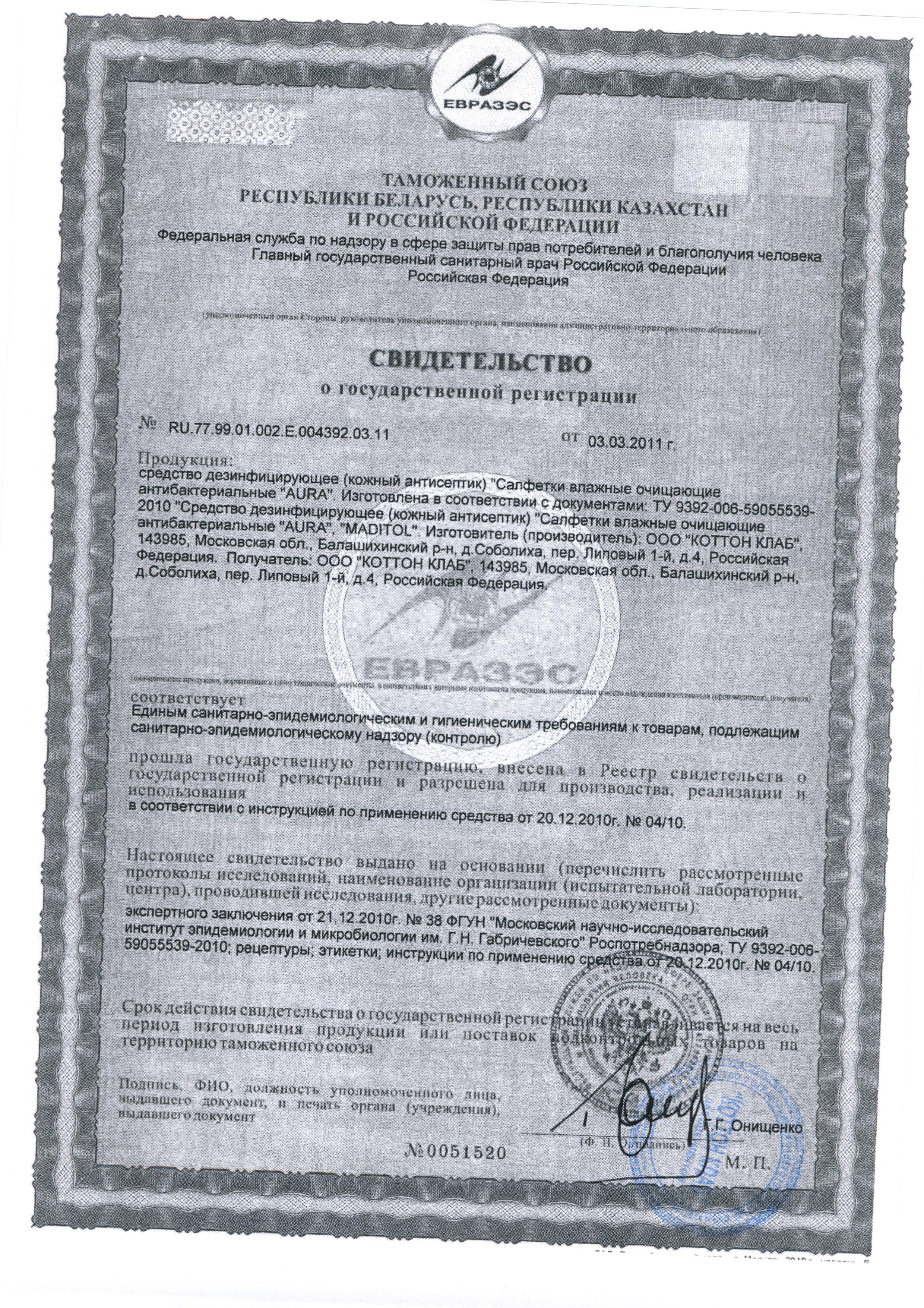 Сертификат на товар - Влажные салфетки универсальные Aura Family 200 штук в упаковке