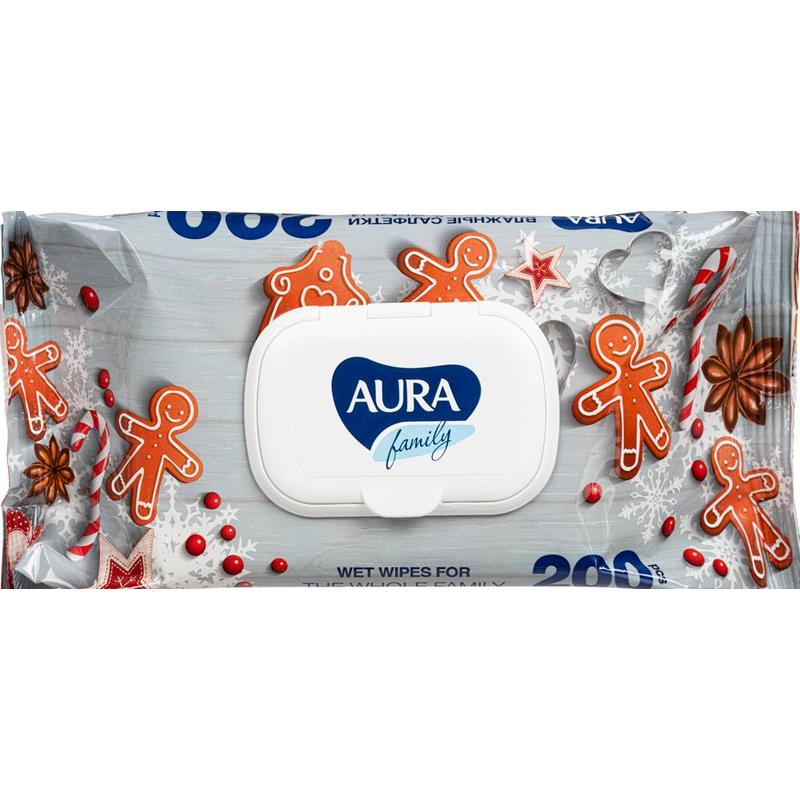 Влажные салфетки универсальные Aura Family 200 штук в упаковке