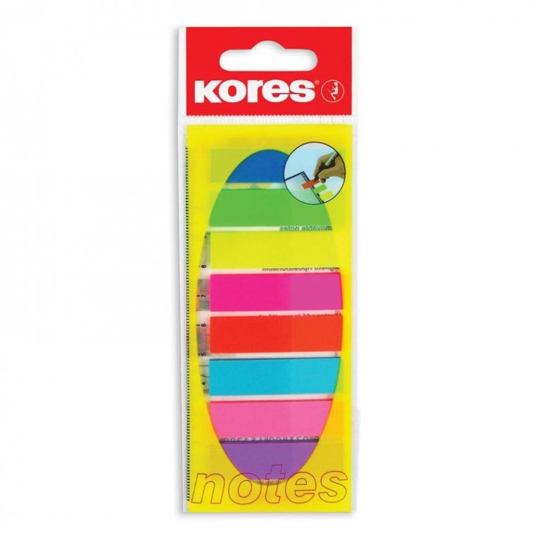 Самоклеящиеся закладки Kores Film шириной 12 мм помогают выделить и систематизировать нужную информацию в документах, книгах, журналах. Закладки клейкие выполнены из тонкого пластика, подходят для нанесения надписей. Могут многократно переклеиваться, не оставляют следов и не повреждают бумагу. Клейкие закладки представлены в восьми ярких цветах по 25 штук каждого. Закреплены на 12-сантиметровой линейке.
