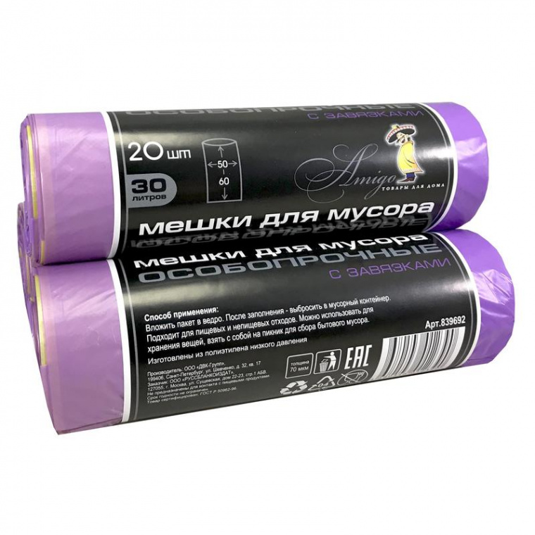 Объем 30 литров, плотность 25 мкм.