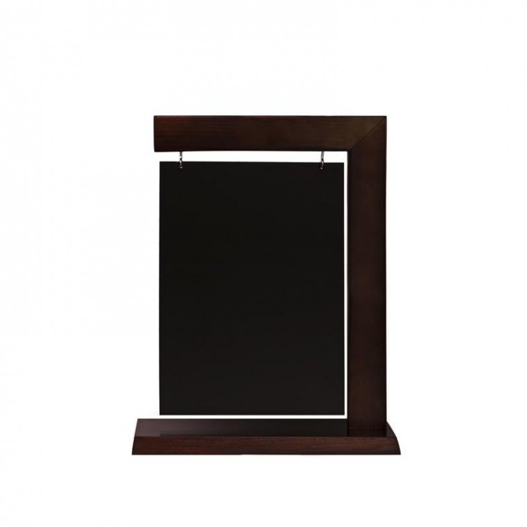 Ценник черный меловой на деревянной основе, для записей мелом. Предназначен для размещения информации с помощью мела. Размер А4. Основание выполнено из древесины хвойных пород и окрашено в цвет «орех». Рабочая поверхность — ХДФ, окрашенный грифельной краской в черный цвет. Черная рабочая поверхность крепится к верхней рейке при помощи шуруп-колец. Ценник упакован в термоусадочную плёнку.
