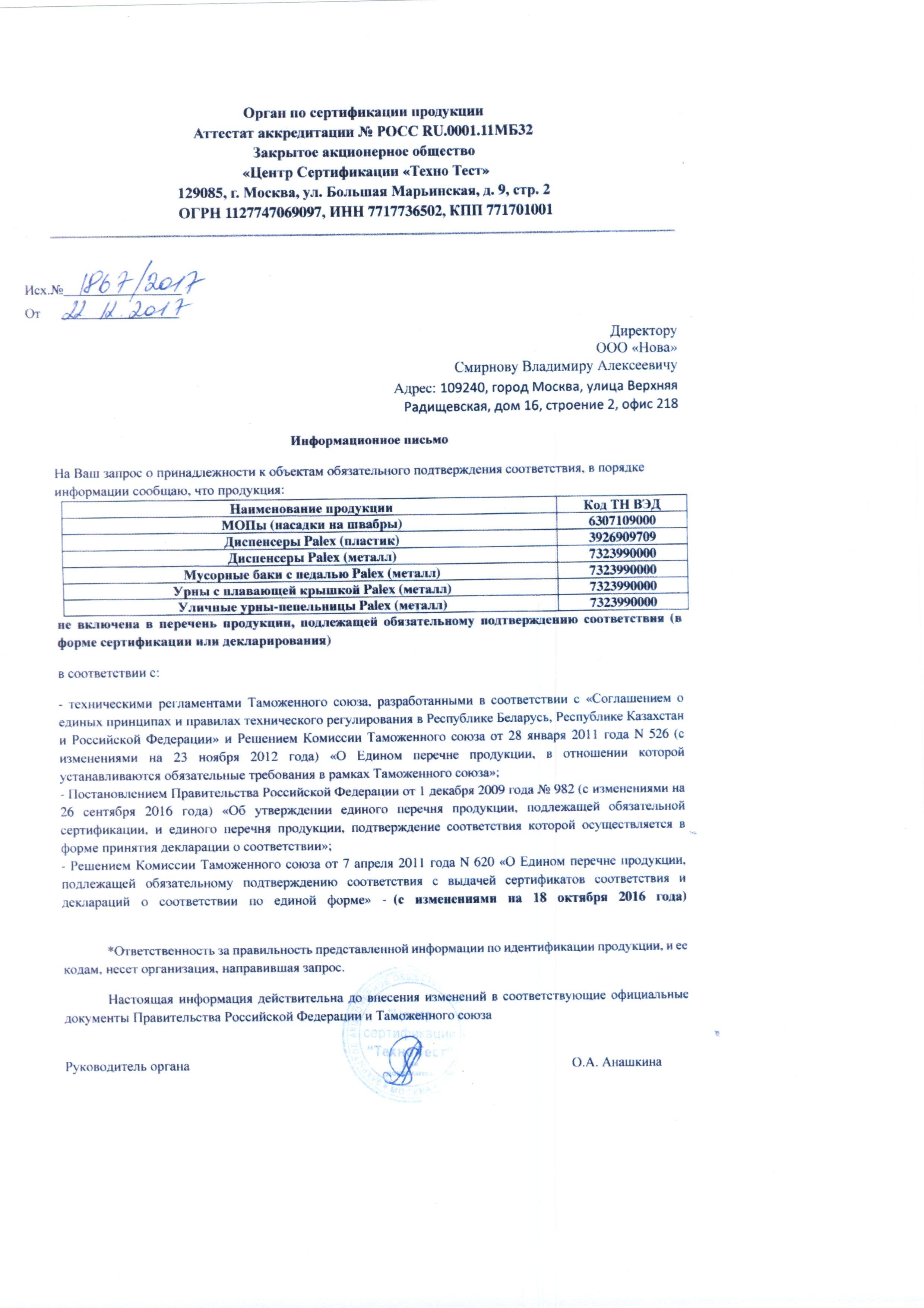 Сертификат на товар - Дозатор для жидкого мыла Palex 3430-1 пластиковый 1 л