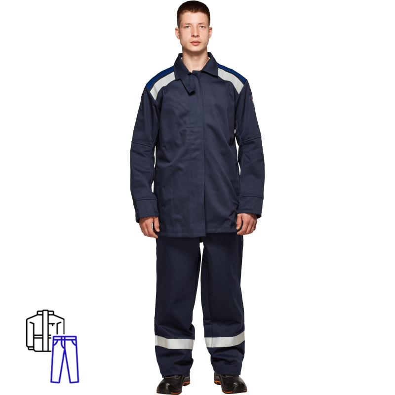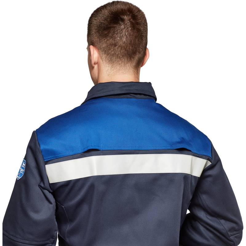 Костюм сварщика летний "Премиум". Конструкция костюма "Премиум" разработана с максимальным количеством защитных накладок, обеспечивающих полную защиту от прожигания и высоких температур. Куртка сварщика прямого силуэта, с центральной потайной застежкой на пуговицы, карманами в боковых швах с отложным воротником. Накладки кокетки спинки, переходящие на полочки, выполнены из огнестойкой светоотражающей ленты. Под кокеткой спинки расположены вентиляционные отверстия. На рукаве имеется шеврон, обозначающий спецсвойства костюма. Брюки для сварщика прямого силуэта с застежкой на петли и пуговицы в боковых швах, с притачным регулируемым поясом. По низу брюк проходит огнестойкая светоотражающая лента шириной 50 мм. Огнезащитная ткань "Гефест" - 100% хлопок (плотность 420 г/кв. м), переплетение сатин 4/1, обработка Flame Retardan, огнезащитная светоотражающая лента XM-6011 FR. Преимущества ткани: не горит и не тлеет, стойкая к прожиганию, огнестойкие свойства сохраняются при многочисленных стирках и химических чистках, специальное сатиновое переплетение обеспечивает эффект "скатывания" искр и брызг расплавленного металла. Класс защиты: 2.Срок хранения костюмов не ограничен при соблюдении правил хранения (защита от прямого попадания солнечных лучей и атмосферных воздействий при температуре не ниже 5 °С и не выше 40 °С, при относительной влажности воздуха 50-70 %). ЗАКЛЮЧЕНИЕ МИНПРОМТОРГА РФ МОЖЕТЕ СКАЧАТЬ ЗДЕСЬ: