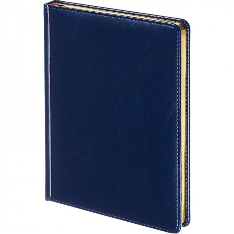 Ежедневник недатированный Attache, цвет синий. Коллекции Sidney Nebraska. Формата А5 , размер изделия — 145×205 мм. Твердая обложка из термоактивного материала отличается красивым глянцем и насыщенностью цвета. Ежедневник станет прекрасным подарком деловому человеку. Красивая обложка, плотная и приятная на ощупь бумага — эта записная книга подходит для серьезного человека. Он сможет содержать всю ценную информацию. Красивый дизайн и высокое качество выделают блокнот из ряда подобных. Благородно-глянцевый материал ежедневника Sidney прекрасно подходит для любых видов тиснения (блинт, фольга, конгрев, шелкография, лазерная гравировка) Блок: недатированный, листы внутреннего блока сделаны из белой офсетной бумаги, плотностью 70 г/кв.м., размер блока — 140×200 мм, срез имеет позолоту, 136 листов (272 страницы), 1 ляссе бордового цвета, печать блока в 2 краски. Ежедневник содержит дополнительную справочную информацию на 7 листов (14 страниц): личные данные, часовые пояса, аэропорты Европы, штрих-коды, единицы измерения, коды стран и городов, размеры одежды, международные и государственные праздники. Последние 19 страниц занимает телефонная книга.