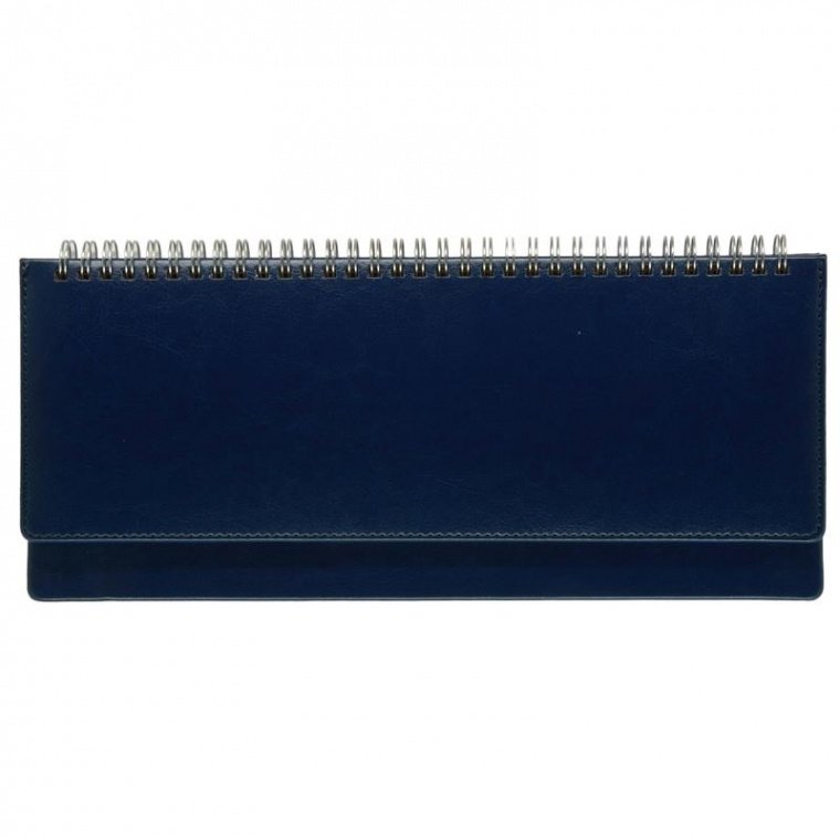 Планинг недатированный — коллекции Sidney Nebraska. Размер 305×130 мм. Удобен для планирования рабочего времени, встреч, совещаний, задач. Твердая обложка из итальянской искусственной кожи синего цвета (возможно нанести тиснение — шелкография, уф-печать). Тип крепления — спираль. Реальный шов по периметру в цвет материала. Скругленные уголки. Блок: недатированный, состоит из 64 листов (128 страниц) офсетной бумаги, плотностью 70 г/кв.м, печать в 2 цвета. Информационный блок: личные данные,часовые пояса, аэропорты Европы, календарь (вся справочная информация на 15 страниц)