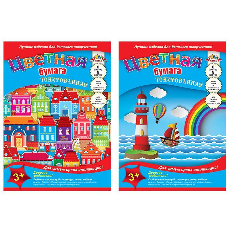 Бумага цветная Апплика (А4, 8 листов, 8 цветов, офсетная, тонированная)