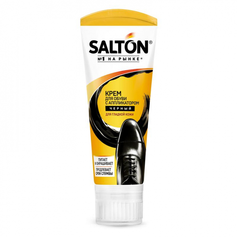 Крем для обуви «Salton» с поролоновым аппликатором восстанавливает цвет и смягчает кожу, придает блеск после полировки.