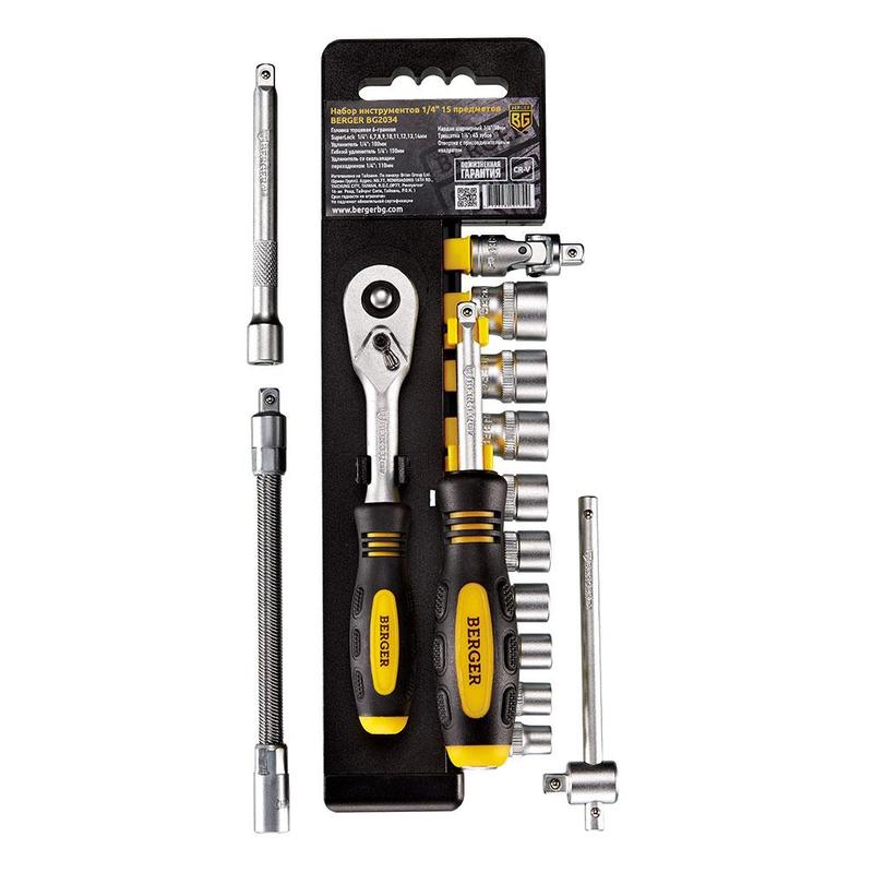 Набор торцевых головок с инструментом 1/4 15 предметов Berger (BG2034)