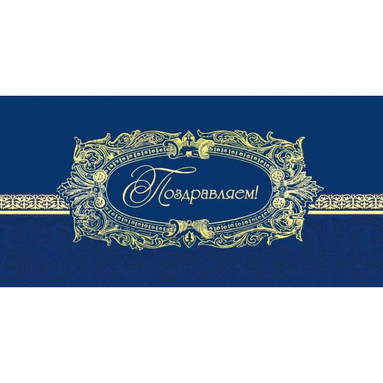 Поздравительная открытка декорирована фольгой, имеет матовый лак, двойное сложение. Формат — 10.5×21 см. На лицевой стороне расположена надпись ’Поздравляем!’. Готовый текст-поздравление внутри отсутствует. В упаковке 10 открыток, каждая комплектуется белым конвертом. Страна производства — Россия.