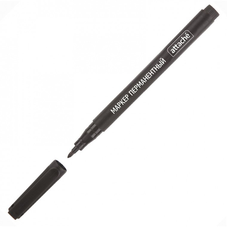 Перманентный маркер в пластиковом корпусе. Нестираемые чернила пишут на любой поверхности. Круглый наконечник обеспечивает толщину линии в 1 мм. Цвет чернил — черный.