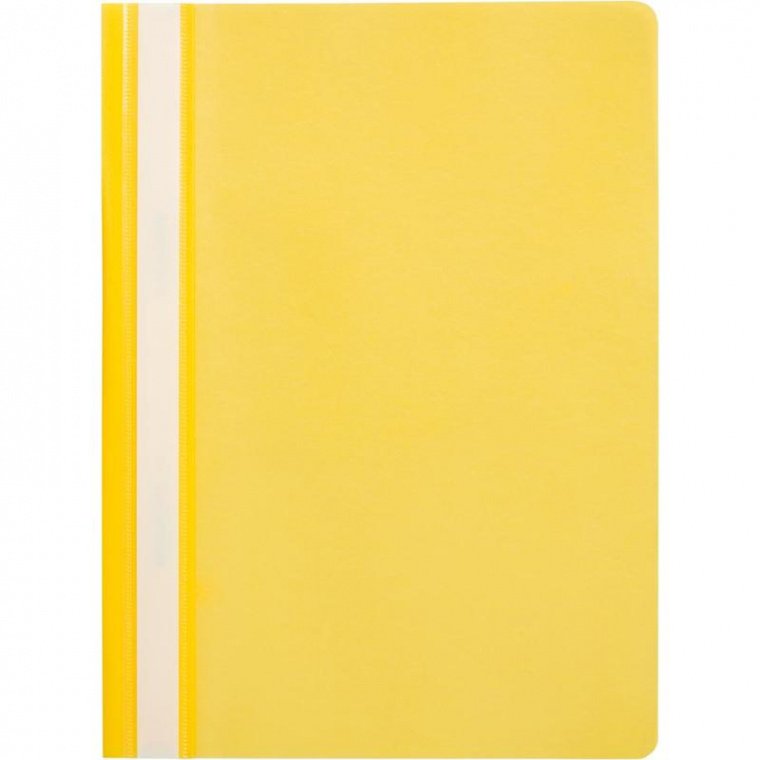 Папка-скоросшиватель Attache Economy А4 формата, с прозрачным верхним листом, желтого цвета. Для бережного хранения перфорированных документов А4. Изготовлена из пластика плотностью 110 мкм. Усиленный пластиковый корешок с белой полосой для размещения информации. 10 штук в упаковке.