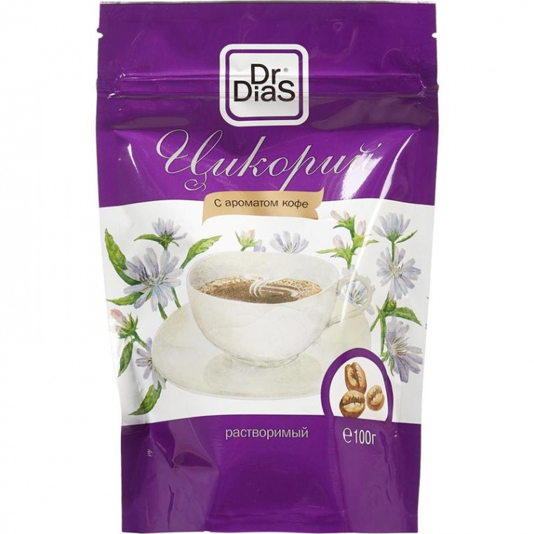 Растворимый цикорий Dr.DiaS не имеет в своем составе кофеина, при этом обладает отличными тонизирующими свойствами. Кроме этого, в нем содержатся различные витамины, минеральные вещества, а также инулин, который стимулирует рост и активность полезных бифидобактерий, улучшает обмен веществ и пищеварения.