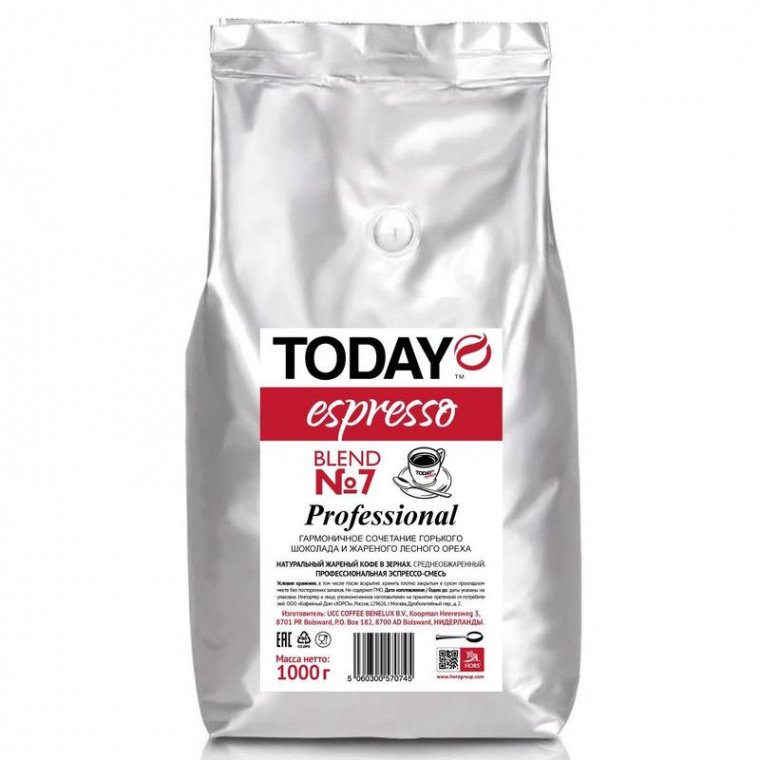 Помимо яркого эспрессо кофе Today Espresso Blend № 7 станет отличной основой и для других популярных напитков — капучино, латте или американо. Чашка ароматного кофе идеальна для быстрого пробуждения, а также незаменима в условиях высокой умственной загрузки, многозадачности на работе и активного темпа жизни.