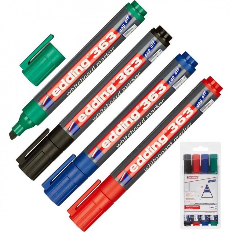 Набор маркеров для досок Edding 363/4S с технологией «cap off»