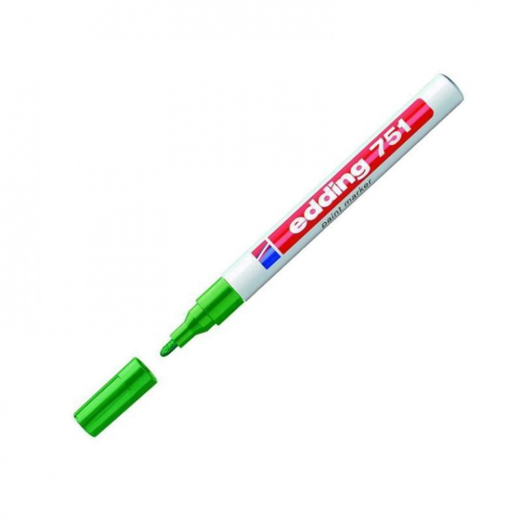 Универсальный маркер Edding 751 используется для промышленной непрозрачной маркировки практически всех материалов, например, стекла, пластика, дерева или металла. Может применяется для письма на жирных, пыльных, грязных поверхностях в индустриальных условиях. Лаковый маркер устойчив к кислотам, растворителям, механическому истиранию, свету. Высококонцентрированный пигмент хорошо ложится на гладкие и шероховатые поверхности. Не содержит толуола и ксилола. Специальные структуры, введенные в состав маркера Edding E 751, растворяют масляную пленку на поверхности письма, что дает яркую устойчивую надпись. Непрозрачные лаковые чернила позволяют делать хорошо заметные надписи густым плотным слоем даже на темных и прозрачных поверхностях. Корпус промышленного маркера изготовлен из алюминия. Маркер Edding E 751 имеет упроченный круглый (пулевидный) наконечник. Наконечник маркера может быть заменен по мере истирания. Благодаря тонкому наконечнику маркером может наносится маркировка на небольшие элементы и поверхности. Толщина линии — 1-2 мм. Поток чернил регулируется клапаном. Чернила маркера с лакирующим эффектом на основе нитрокраски. Водостойкий, быстро сохнет. Термостойкость надписи до 400 градусов по Цельсию. Надписи цветами 05-010, 049, 054 также видимы до 1000 С. Маркер Edding E 751 хорошо зарекомендовал себя в работе при перепадах температур от −15 до 30. Промышленный лаковый маркер Edding Е-751 универсален. Используется, например, при нанесении меток на разнородные материалы. При маркировке изделий из резины, пластика, стекла, металла, кабеля, проводов, при нанесении маркировки на товары достаточно одного маркера — Edding E 751. Идеально подходит для маркировки грузов, приборостроения, технологической маркировки. Кроме того, маркер Edding E 751, благодаря разнообразной палитре цветов и свойствам красящего вещества, широко используется для декоративных и оформительских работ дизайнерами. используется в витражных работах, росписи по дереву и керамике, для других интерьерных работ. Инструкция по применению маркера: 1. Перед использованием хорошенько встряхнуть с закрытым колпачком. 2. Снимите колпачок, прижмите наконечник к поверхности, надавите и удерживайте пока не проступит краска. 3. Применять после того как убедитесь, что вытекает исходный цвет. Предостережение: плотно закрывайте колпачок после применения, держать маркер вдали от огня и прямых солнечных лучей.