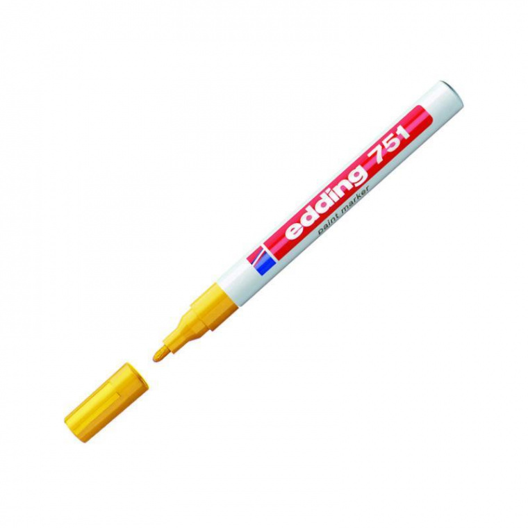 Универсальный маркер Edding 751 используется для промышленной непрозрачной маркировки практически всех материалов, например, стекла, пластика, дерева или металла. Может применяется для письма на жирных, пыльных, грязных поверхностях в индустриальных условиях. Лаковый маркер устойчив к кислотам, растворителям, механическому истиранию, свету. Высококонцентрированный пигмент хорошо ложится на гладкие и шероховатые поверхности. Не содержит толуола и ксилола. Специальные структуры, введенные в состав маркера Edding E 751, растворяют масляную пленку на поверхности письма, что дает яркую устойчивую надпись. Непрозрачные лаковые чернила позволяют делать хорошо заметные надписи густым плотным слоем даже на темных поверхностях. Корпус промышленного маркера изготовлен из алюминия. Маркер Edding E 751 имеет упроченный круглый (пулевидный) наконечник. Наконечник маркера может быть заменен по мере истирания. Благодаря тонкому наконечнику маркером может наносится маркировка на небольшие элементы и поверхности. Толщина линии — 1-2 мм. Поток чернил регулируется клапаном. Чернила маркера с лакирующим эффектом на основе нитрокраски. Водостойкий, быстро сохнет. Термостойкость надписи до 1000 градусов по Цельсию. Надписи цветами 06-010, 049, 054 также хорошо видимы до 1000 С. Надписи, нанесенные маркером других цветов термостойки до 400 градусов по Цельсию. Маркер Edding E 751 хорошо зарекомендовал себя в работе при перепадах температур от −15 до 30. Промышленный лаковый маркер Edding Е-751 универсален. Используется, например, при нанесении меток на разнородные материалы. При маркировке изделий из резины, пластика, стекла, металла, кабеля, проводов, при нанесении маркировки на товары достаточно одного маркера — Edding E 751. Идеально подходит для маркировки грузов, приборостроения, технологической маркировки. Кроме того, маркер Edding E 751, благодаря разнообразной палитре цветов и свойствам красящего вещества, широко используется для декоративных и оформительских работ дизайнерами. используется в витражных работах, росписи по дереву и керамике, для других интерьерных работ. Инструкция по применению маркера: 1. Перед использованием хорошенько встряхнуть с закрытым колпачком. 2. Снимите колпачок, прижмите наконечник к поверхности, надавите и удерживайте пока не проступит краска. 3. Применять после того как убедитесь, что вытекает исходный цвет. Предостережение: плотно закрывайте колпачок после применения, держать маркер вдали от огня и прямых солнечных лучей.