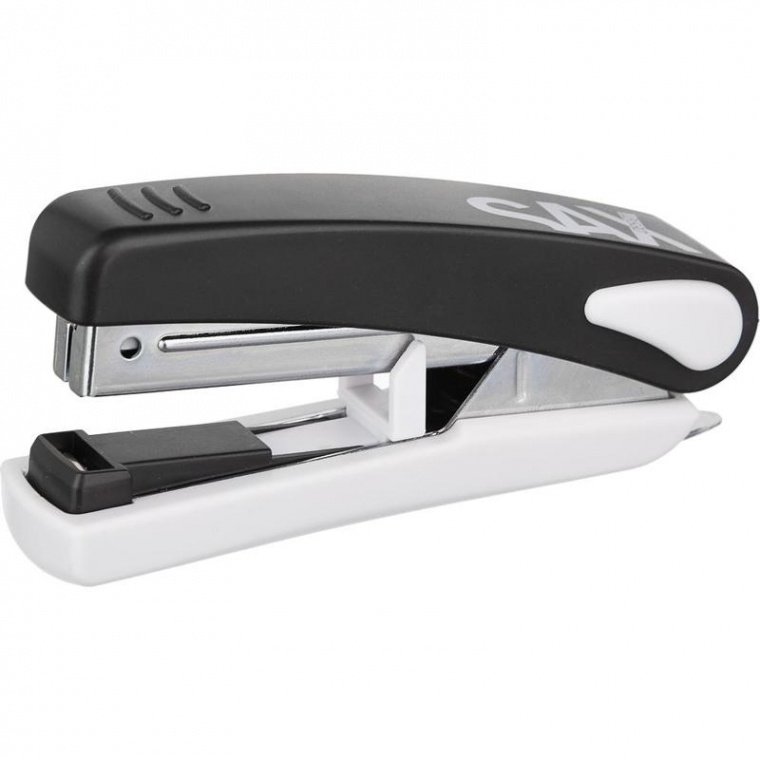Степлер средний Sax 519 одновременно сшивает до 20 листов плотностью 80 г/кв.м. Глубина закладки бумаги — 44 мм (4,4 см). Оснащен функцией плоского сшивания, позволяющей до 30% уменьшить толщину документов. Встроенный антистеплер. Корпус выполнен из металла и пластика, цвет черный. В степлере используются скобы № 10. Вместимость скоб — 100 штук.