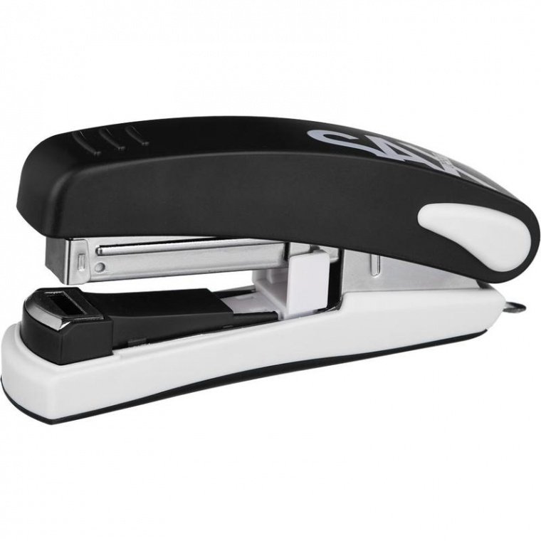 Степлер средний Sax 539 одновременно сшивает до 30 листов плотностью 80 г/кв.м. Глубина закладки бумаги — 54 мм (5,4 см). Оснащен функцией плоского сшивания, позволяющей до 30% уменьшить толщину документов. Встроенный антистеплер. Корпус выполнен из металла и пластика, цвет черный. В степлере используются скобы № 24/6, 26/6. Вместимость скоб — 100 штук. Размер изделия: 154×65×40 мм.
