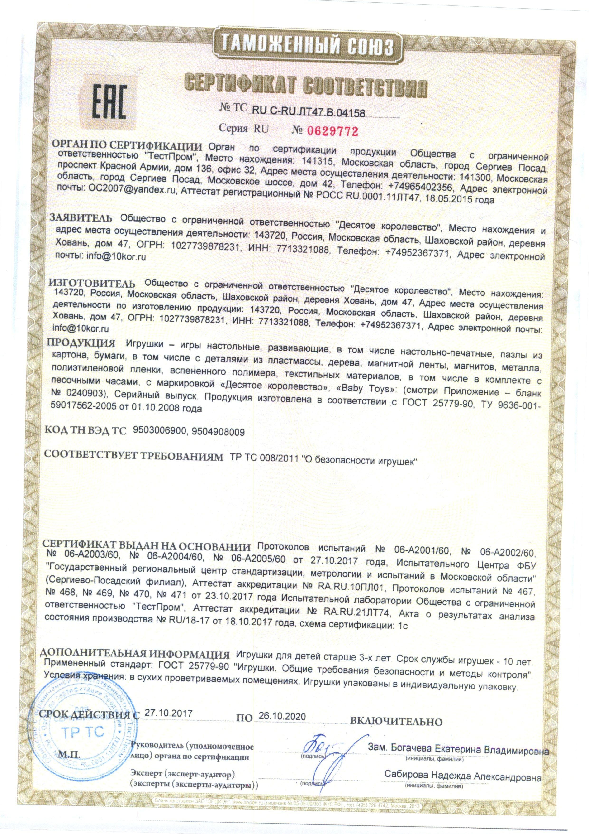Сертификат на товар - Настольная игра Тридевятое царство Словодел