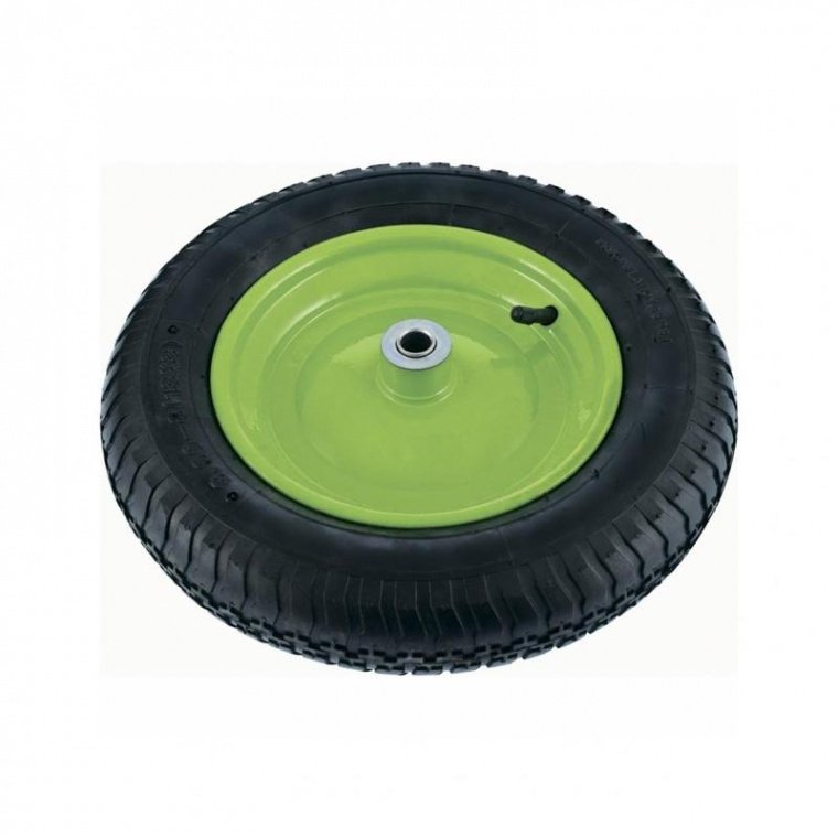 Колесо пневматическое 3,008 с камерой, диаметром 380 мм. Диск стальной не разборный толщиной 0,8 мм диаметром 230 мм, порошковая окраска. Длина ступицы: 90 мм (расстояние от подшипника до подшипника). Внутренний диаметр подшипника 16 мм (посадочный размер).